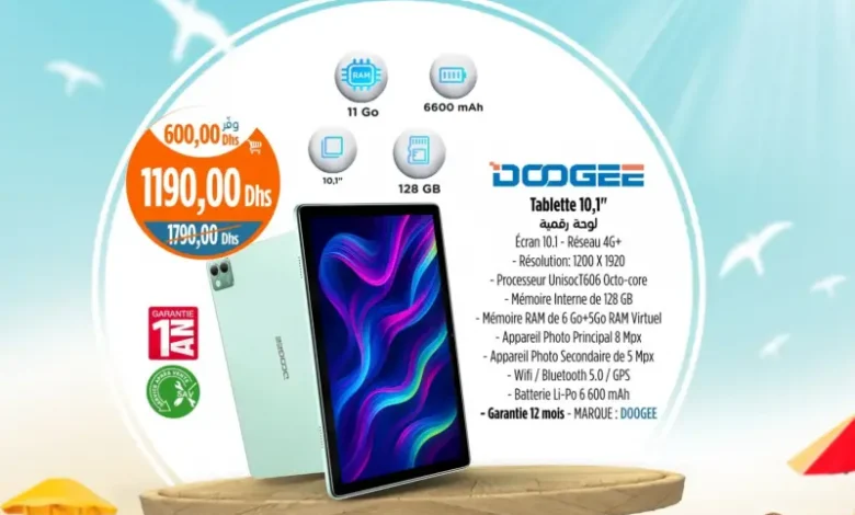 Offres splendide chez Kazyon Market Maroc Tablette DOOGEE 10 pouces 128/6Go عروض كازيون